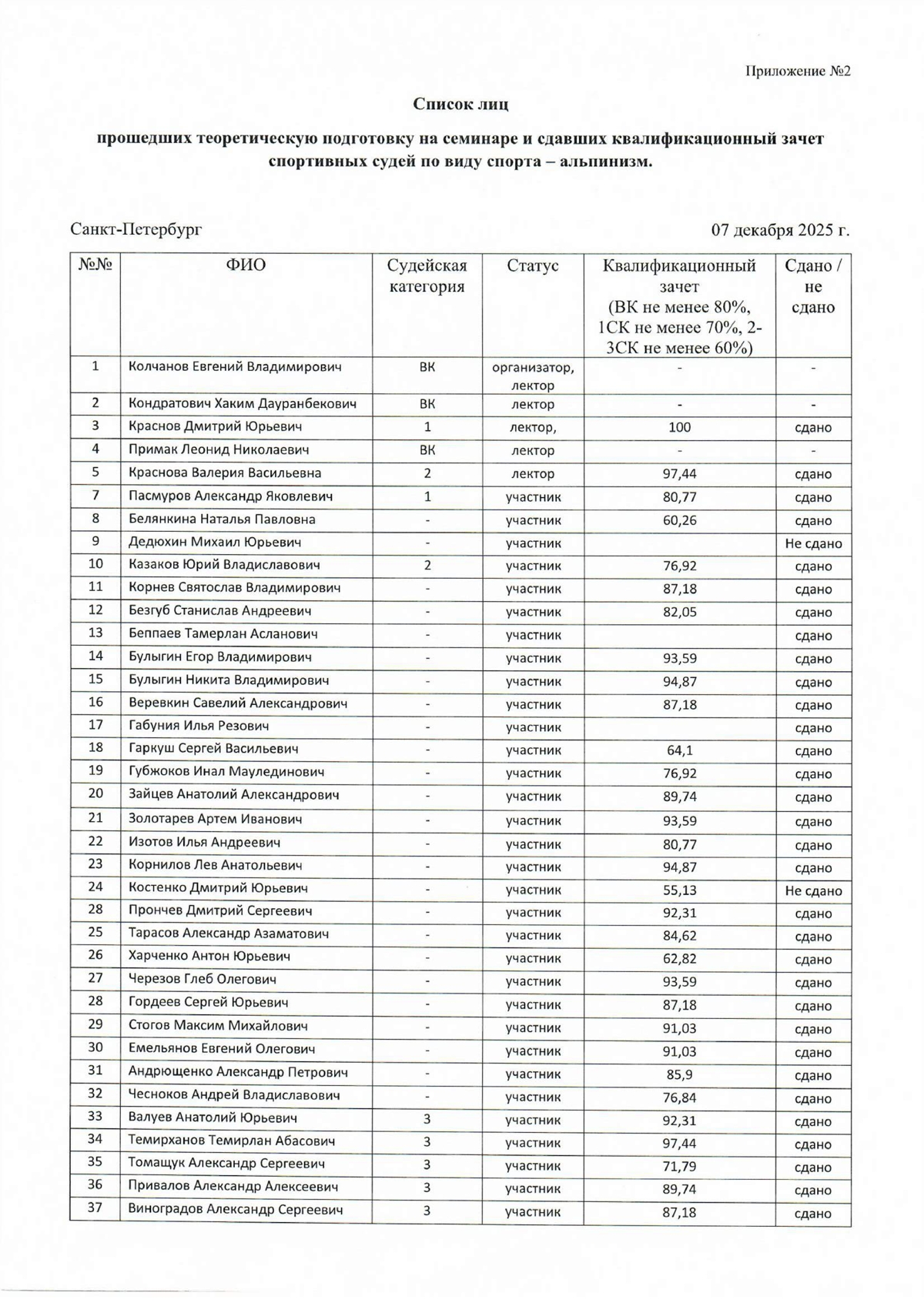 Аттестация судей 07.12.2025 года