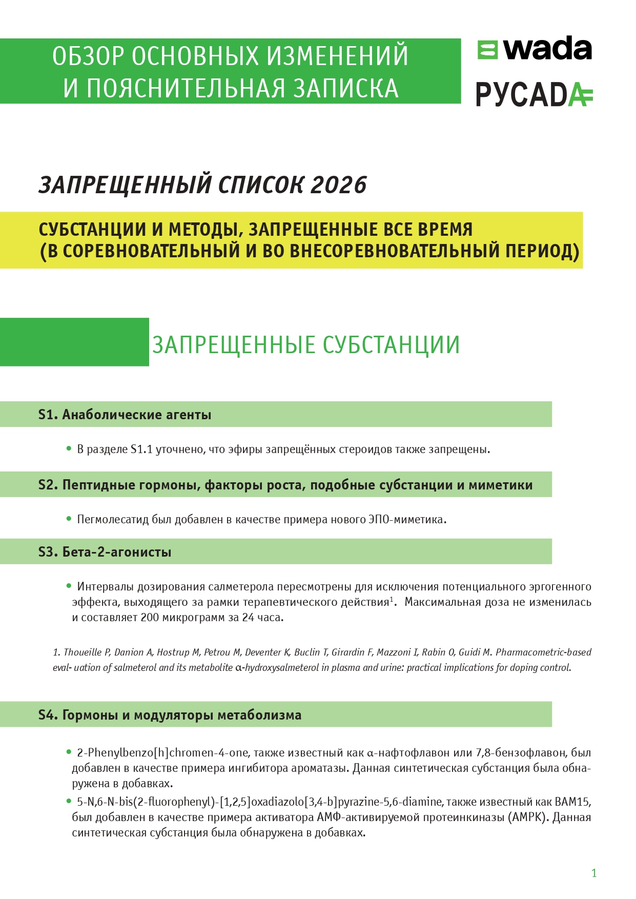 Федерация альпинизма Санкт-Петербурга АнтидопингЗапрещенный список 2026. Обзор основных изменений.![]() ![]() ![]() ![]() |