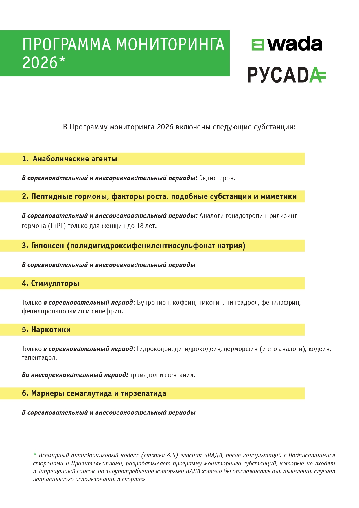 Федерация альпинизма Санкт-Петербурга АнтидопингПрограмма мониторинга 2026