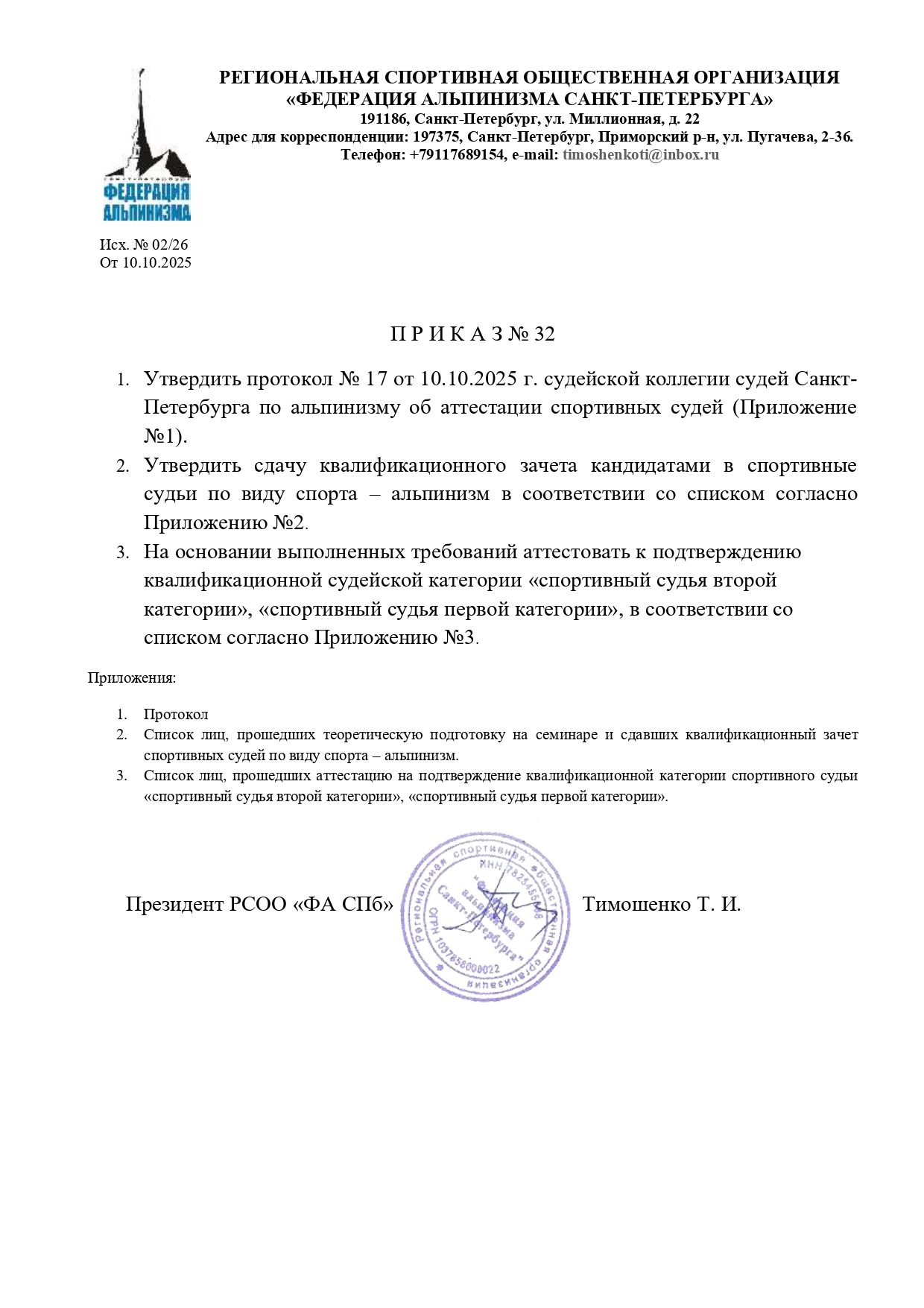 Федерация альпинизма Санкт-Петербурга ДокументыАттестация судей 10.10.2025 года![]() ![]() ![]()